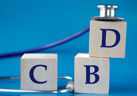 CBD ( - acronym on wooden large cubes on blue background with stethoscope. The common bile duct, which is sometimes simply known as the bile duct, is formed by the union of the cystic duct and common hepatic duct