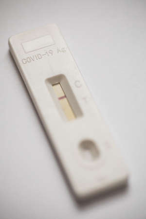 COVID 19, a man holding a negative antigen test in his hand, close-up.