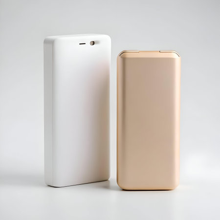 Two blank power banks. one white and one gold. perfect for showcasing your brand's logo or design.