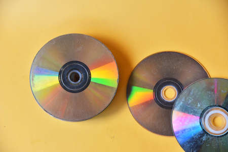 Broken,used and old CD,VCD,DVD on color background