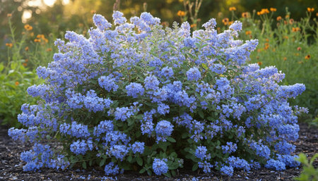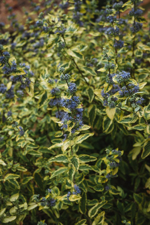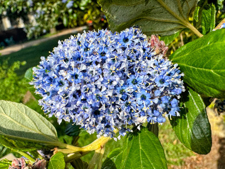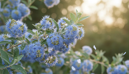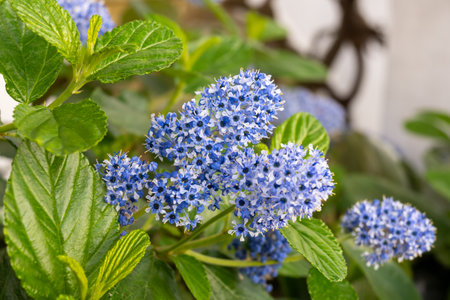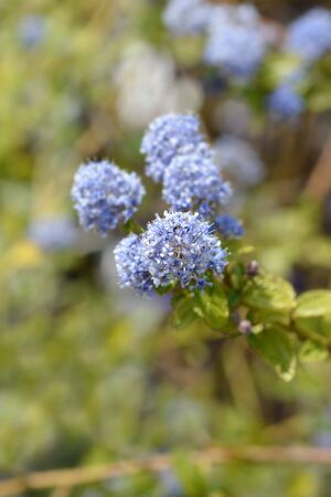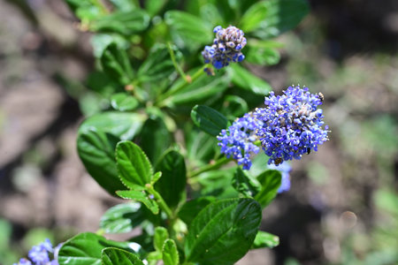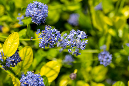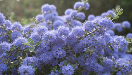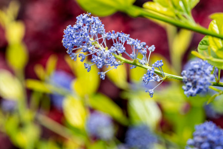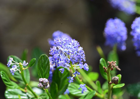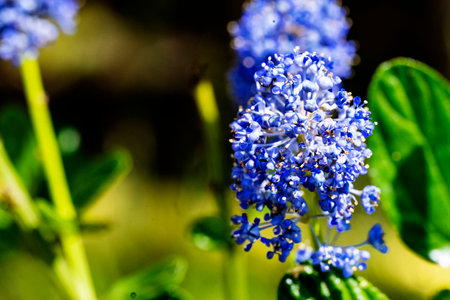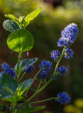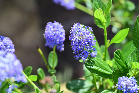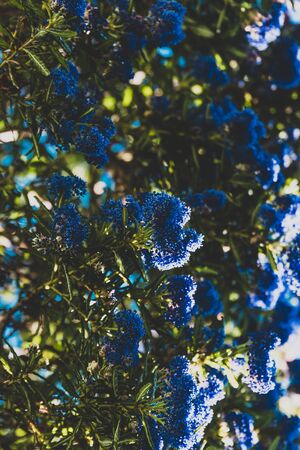 close-up of ceanothus blue pacific tree outdoor in sunny backyard shot at shallow depth of field