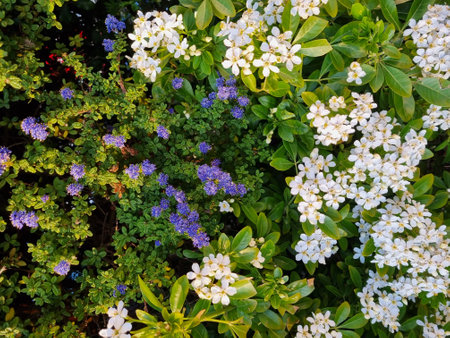 Natural backgound with blooming Plumbago Imperial blue live plants