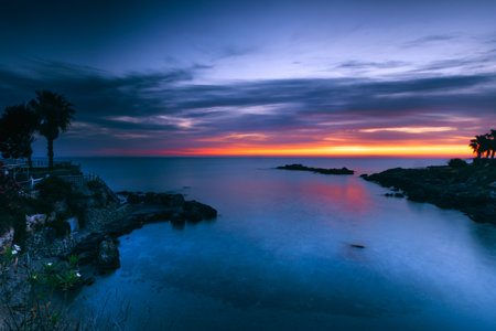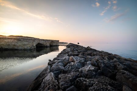 Shot of the Cirica Bay at sunrise. Cirica is a beautiful natual seaside place made of cliffs, rocks and sand in the southern Sicily, Italy