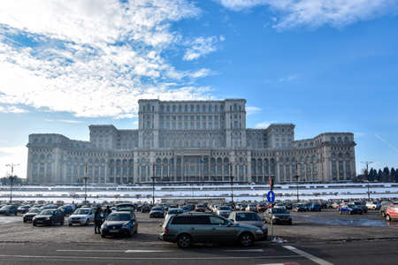 Bucharest, Romania. February 3, 2017. Palace of the Parliament (Palatul Parlamentului din Romania) also known as People's House (Casa Poporului)