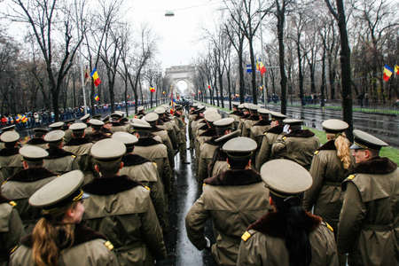 BUCHAREST, ROMANIA - DECEMBER 1, 2010: More than 3,000 soldiers and personnel from security agencies take part in the massive parades on National Day of Romania.
