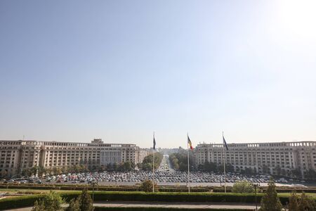 Juny, 2021 - Bucharest, Romania: A frontal view of the House Of Parlament in Bucharest, Romania