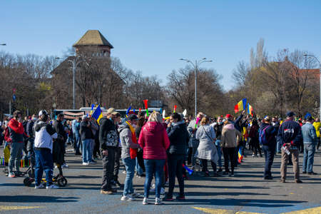 10th April 2021- Bucharest, Romania: Protests at the Victory square against the Covid pandemy restrictions and against the minister Vlad Voiculescu.