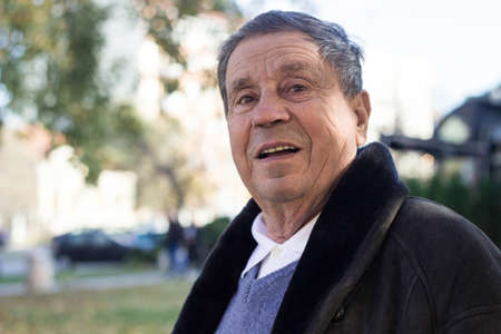Portrait of a smiling senior man in Nature, looking at camera