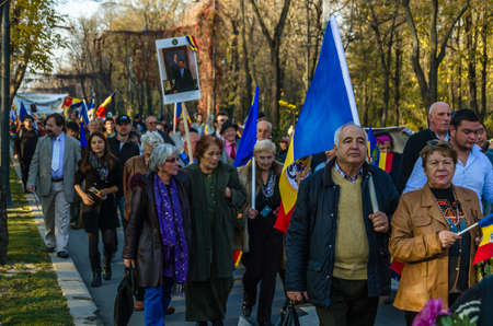 BUCHAREST, ROMANIA - NOVEMBER 10, 2013: Peaceful demonstration for the monarchy in Bucharest, Romania