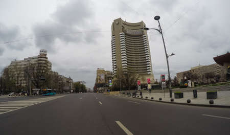 Changes and complications caused by coronavirus epidemy, world without crowds, virus empties streets. No traffic jam, no pollution, empty streets in downtown Bucharest, Romania, 2020