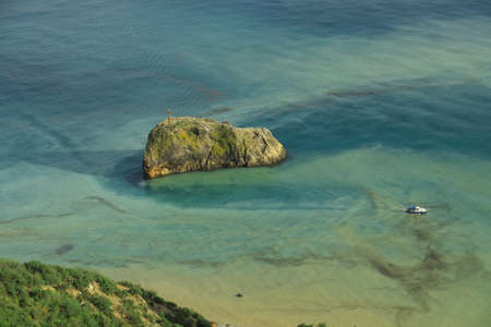 Small island near the beach, aerial view of the blue sea and the coastal strip, the Mediterranean Sea Jijel Algeria Africa