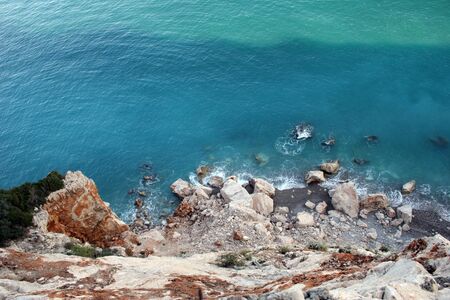 Photography of a cliff in the mediterranean sea. Located in Catalonia, between Vilanova i la Geltrú and Sitges, near Barcelona. Close to this cliff we can find a very famous nudist gay beach.