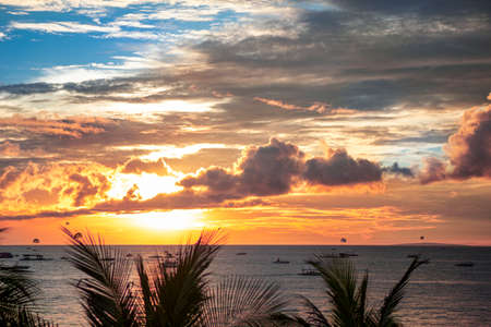 sunset on a beach in the philippines after a storm that leaves beautiful colors