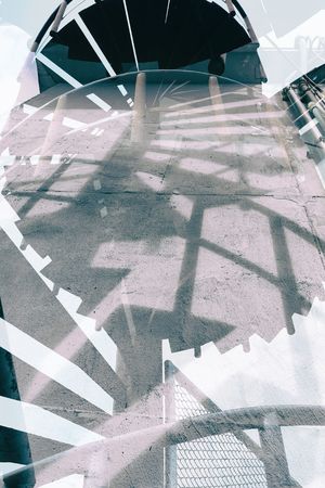 Abstract Double Exposure Fire Escape with Shadow Background.