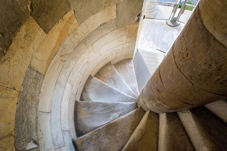 Spiral staircase inside of Pisa tower. Way to the top of famous tower. Pisa, Italy.