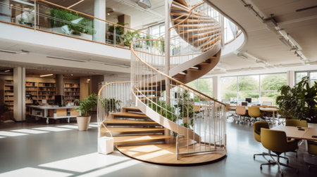 Spiral staircase in the interior of a modern building. 3D rendering