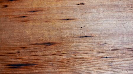 Wooden texture background, pine board, spruce table with knots. Horizontal banner. Top view light wood textured surface with natural pattern. Timber backdrop. Rustic craft. Workbench, floor.