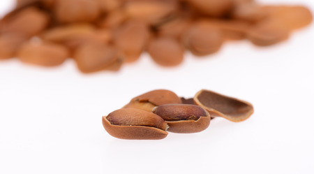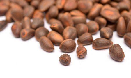 Some cedar nuts isolated on the white background