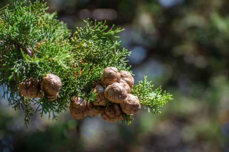 Beautiful branch of a cypress with cones