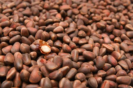 Ripe fresh brown pine nuts in the shell