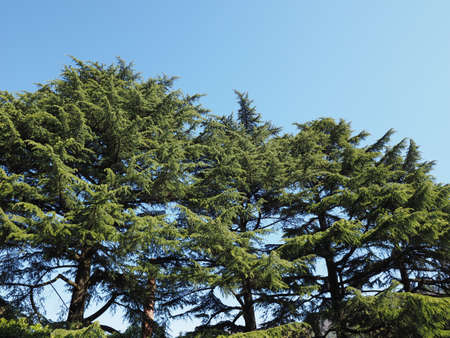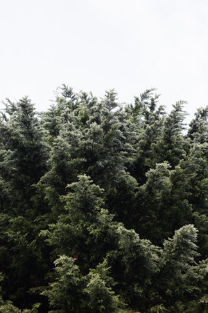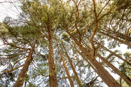 Amazing big cedar trees over beautiful cloudy sky