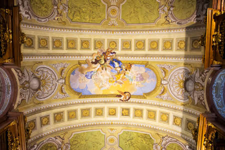 VIENNA, AUSTRIA - MAY 20, 2017: Naturhistorisches Museum (Museum of Natural History) in Vienna, Austria, on may 20, 2017. Detail of the ceiling in the main staircase hall, with its huge fresco