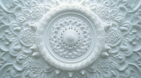 A stunning display of white decorative ceiling panels arranged in a symmetrical pattern, highlighting detailed craftsmanship and timeless elegance suitable for modern interiors.
