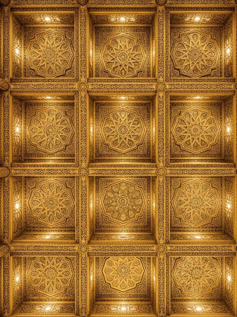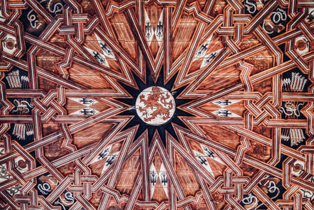 Antique arabian style ceiling, handmade, in an old mosque in Spain.