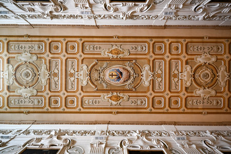 baroque-style ceiling with detailed plasterwork, created with generative ai