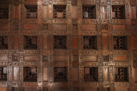 ornate wooden ceiling, Carved wooden detail background, wallpaper