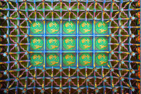KUALA LUMPUR, MALAYSIA - 22 MAR 2017: Beatiful decorative ceiling in chinese Thean Hou Temple with dragons and phoenix birds.
