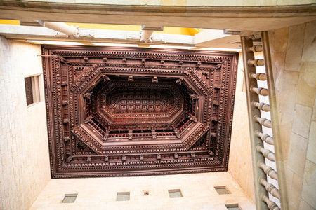 geometrically patterned ceiling in a historic building, created with generative ai