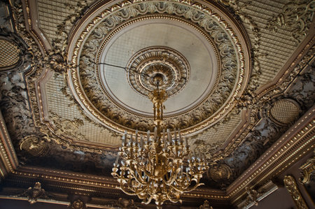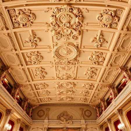 Captivating image of an ornate baroque ceiling featuring intricate designs and moldings, showcasing stunning architectural details and artistic craftsmanship.