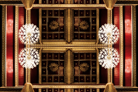 Discover the beauty of an intricately designed ceiling, featuring elaborate decorative elements and a warm color palette that enhances any interior space.