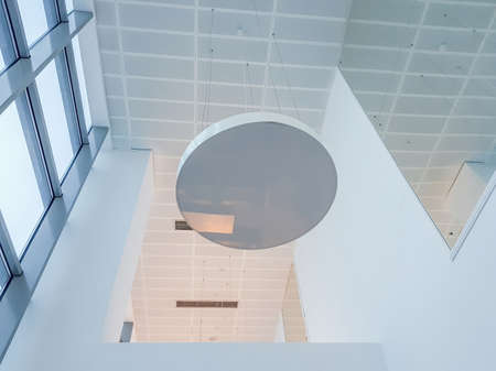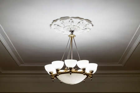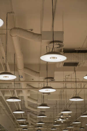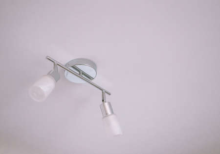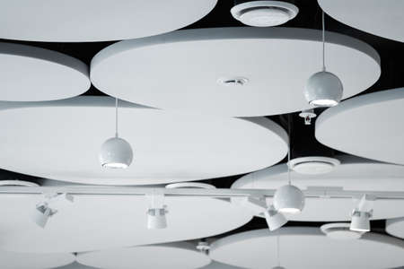 White lamps on a white ceiling. Space for inscription. Quality image for your project