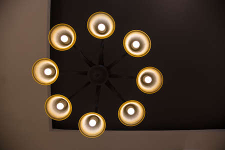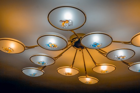 ceiling with adorable chandelier 12 lamps in the modern restaurant