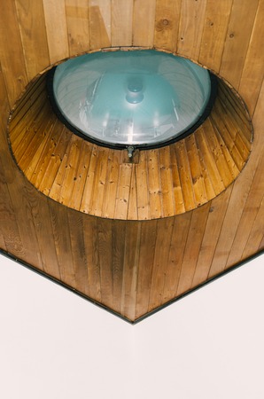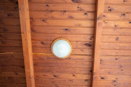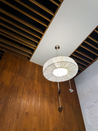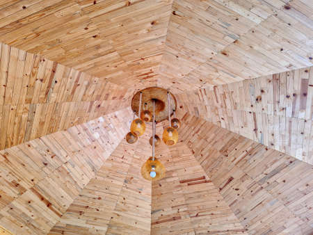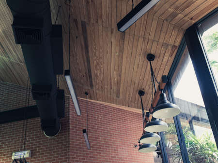 Light wooden cafe interior, Cafe ceiling interior lighting (vintage tone)