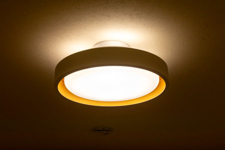 This image features a vintage industrial ceiling light fixture, showcasing bright illumination against a warm background, perfect for enhancing any modern or retro interior.