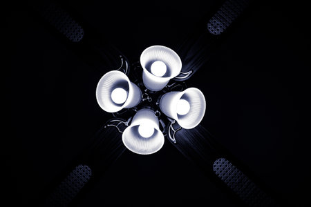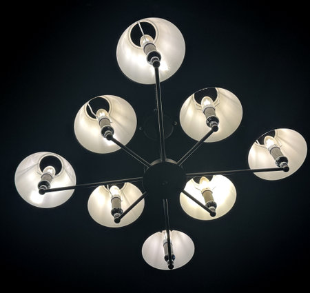 This image showcases a modern chandelier featuring multiple glowing bulbs, casting beautiful shadows on the wall, perfect for interior design inspiration.