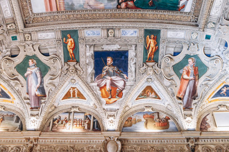 Firenze, Italy - August 16, 2021: interior view of Palazzo Vecchio in Florence, no people are visible.