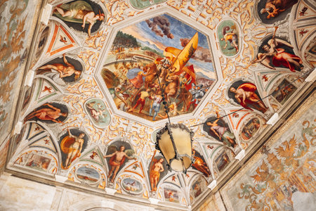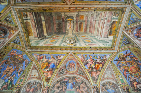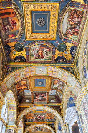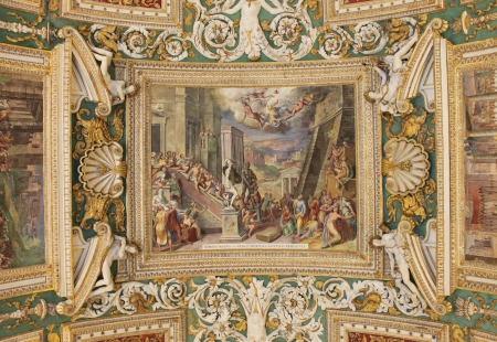 ROME, ITALY - JUNE 28, 2019: ceiling with ancient frescoes in vatican museums