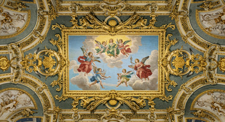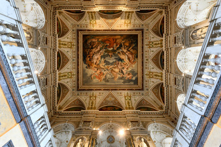 GENOA, ITALY, MARCH 13, 2016: view of a decorative ceiling of the palazzo rosso in the italian city genoa.