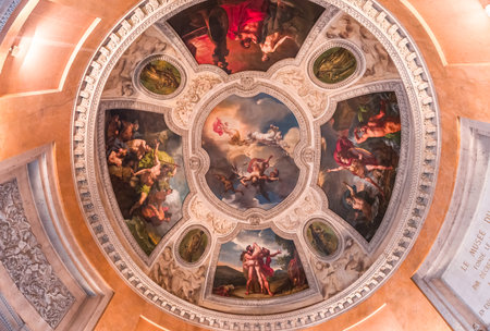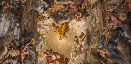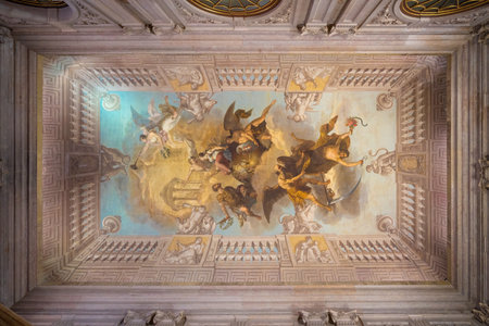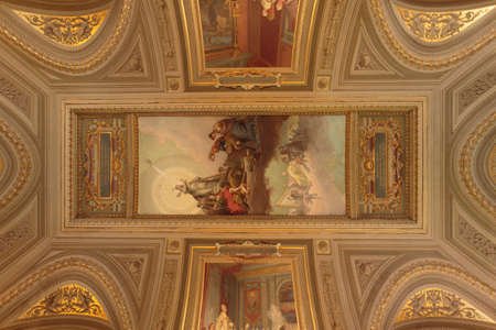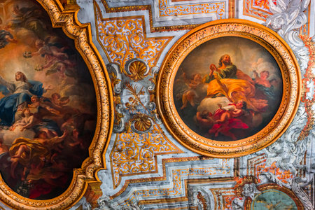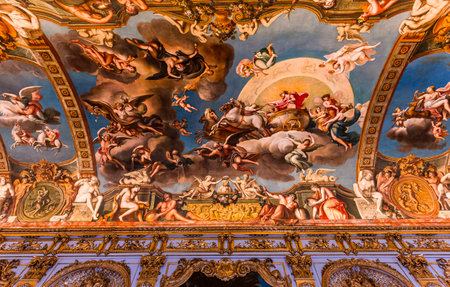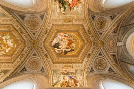 Rome, Italy - Oct 05, 2018: ceiling painting of Mariano Rossi salon in the Borghese Gallery, Rome
