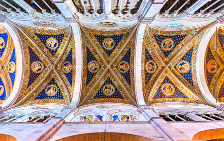 LUCCA, ITALY - APRIL 30, 2013: The beautiful frescoes on the central arched vault of Saint Martin Cathedral, on April 30 in Lucca