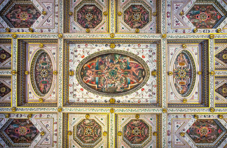 Ferrara, Italy - July 21, 2011: Detail of the paintings and decorations of the Estense castle inside