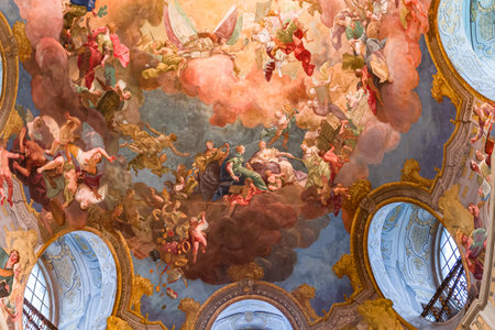 MELK, AUSTRIA, MAY 16, 2015: ceiling painting in Melk Abbey in Melk, Austria. Abbey Church is considered one of the most beautiful in Austria, built in baroque style.