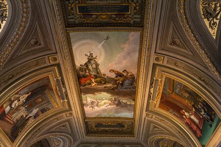 Vatican, Italy - January, 4, 2020. Ceiling of the Museum of Vatican. The Museum is one of the most famous travel distinations of the world.