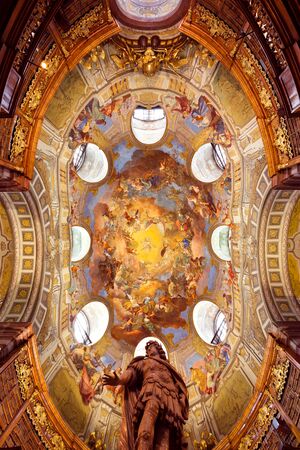 Painted ceiling of the Austrian National Library in Vienna. Interior