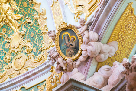 Catania, Sicily, Italy - Aug 17, 2023: Interiors and frescoes of Basilica della Collegiata Church, in Catania, Sicily, Italy.
