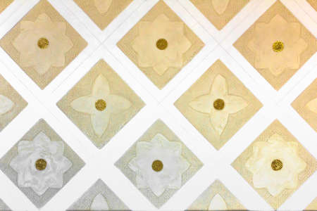 Wall with rhombus and flowers decorations. Vintage style. It can be used as background.